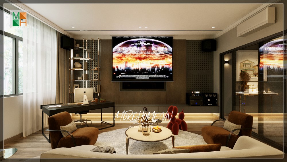 Nội thất phòng khách biệt thự hiện đại được thiết kế đơn giản, gọn gàng hơn, nhưng vẫn giữ được sự tinh tế và sang trọng của căn phòng.